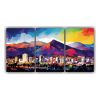 Set 3 Composiciones Vanguardia Belleza natural A Santiago City in Chile in Rainbow AND Vibrants Colors Azul Marino grisaceo, Coral, Amarillo Claro, Plateado, Carmesí, Gris, Dorado, Menta Diseños exclusivos en tela de alta calidad con bastidores de madera