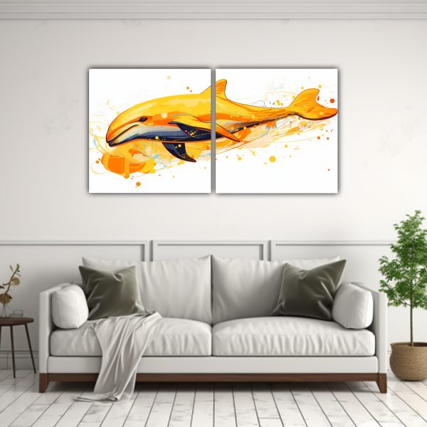 Pinturas Decorativas De Beluga En Colores Mandarina Y Oro Estilo Neo Pop