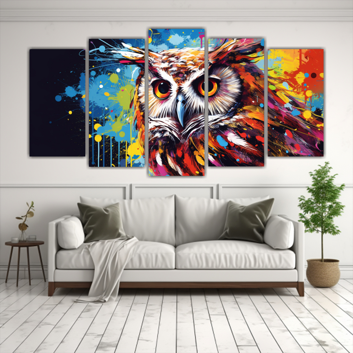 Añade un toque de vanguardia y fantasía a tu hogar con estas impactantes composiciones de búho en tonos turquesa, coral, negro, carmesí y más Decora tu espacio con arte único y moderno, ¡compra ahora en DecoCuadros!