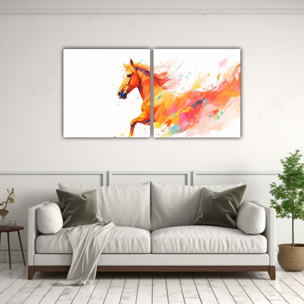 Pinturas Decorativas De Caballo árabe En Colores Arcoíris Y Naranja