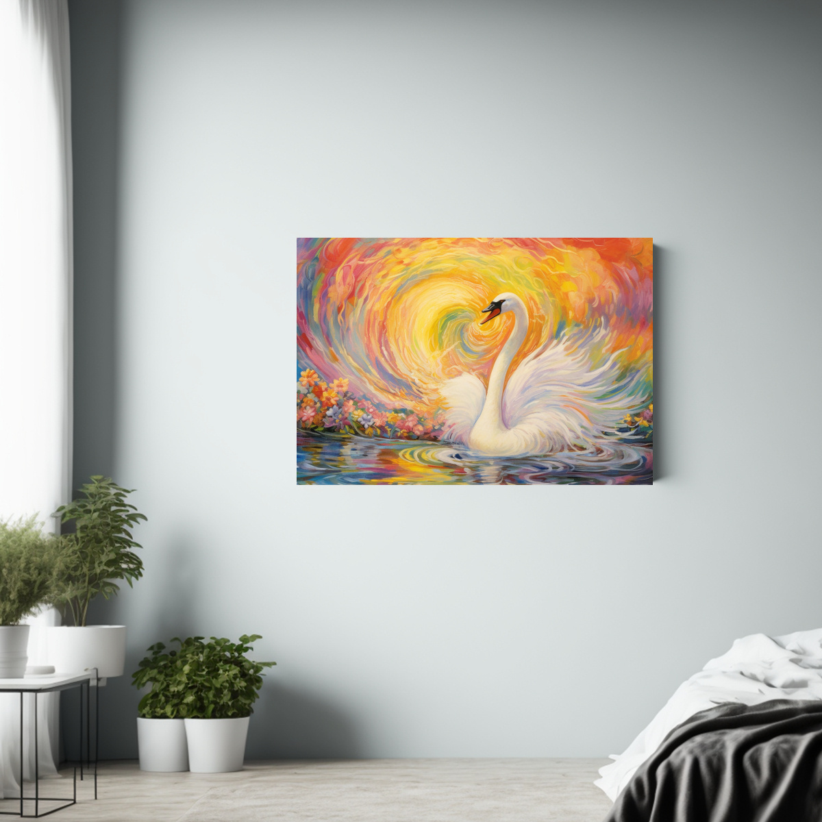 Renueva tu espacio con este cuadro moderno de cisne arcoíris, ideal para aportar un toque de color y elegancia Envíos rápidos y gratuitos en Santiago, ¡aprovecha nuestros diseños exclusivos y decora con estilo!