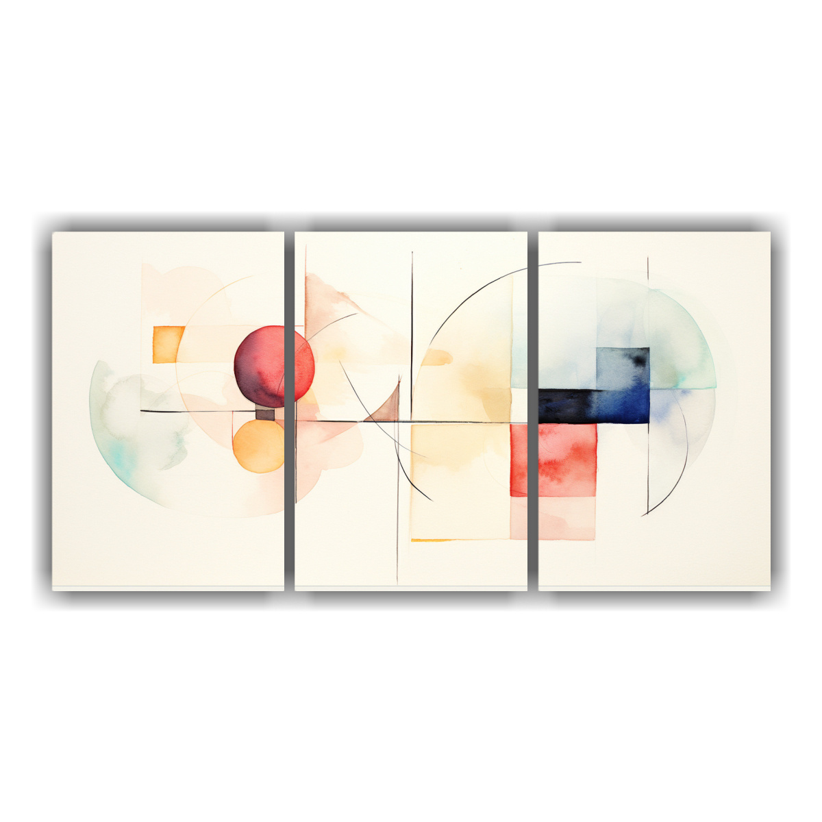 Pinturas Decorativas De Composición Abstracta Fusionando Acuarelas Y Minimalismo En Bastidor De Madera