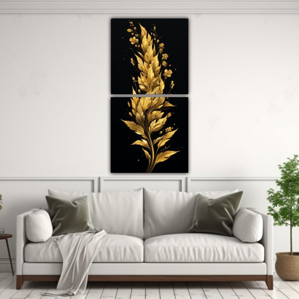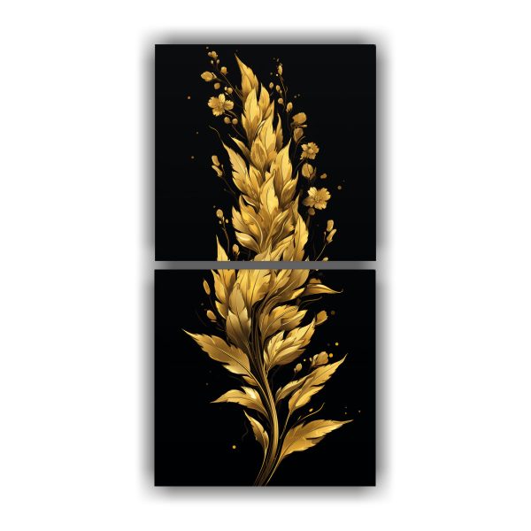 Pinturas Decorativas De Composición Dinámica Con Granos De Amaranto En Colores Dorados Con Atmósfera Neonoir