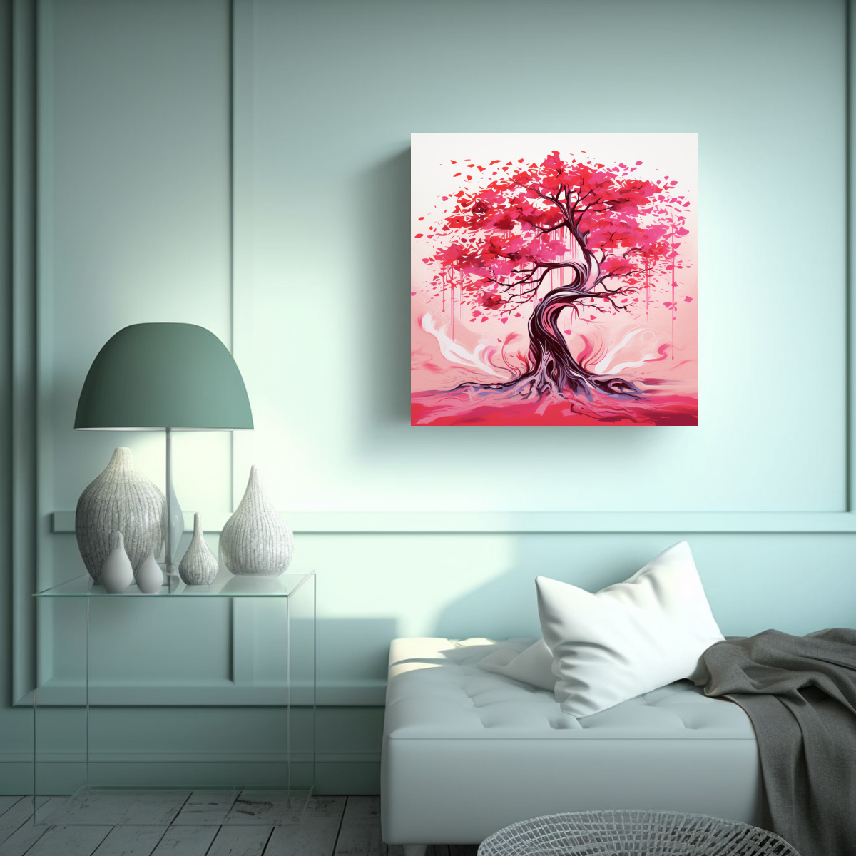 Descubre nuestra amplia colección de cuadros decorativos, como la pintura Composición Expresión Ambiente A Banyan Tree en tonos rojo y rosa Envío rápido y gratis en Santiago