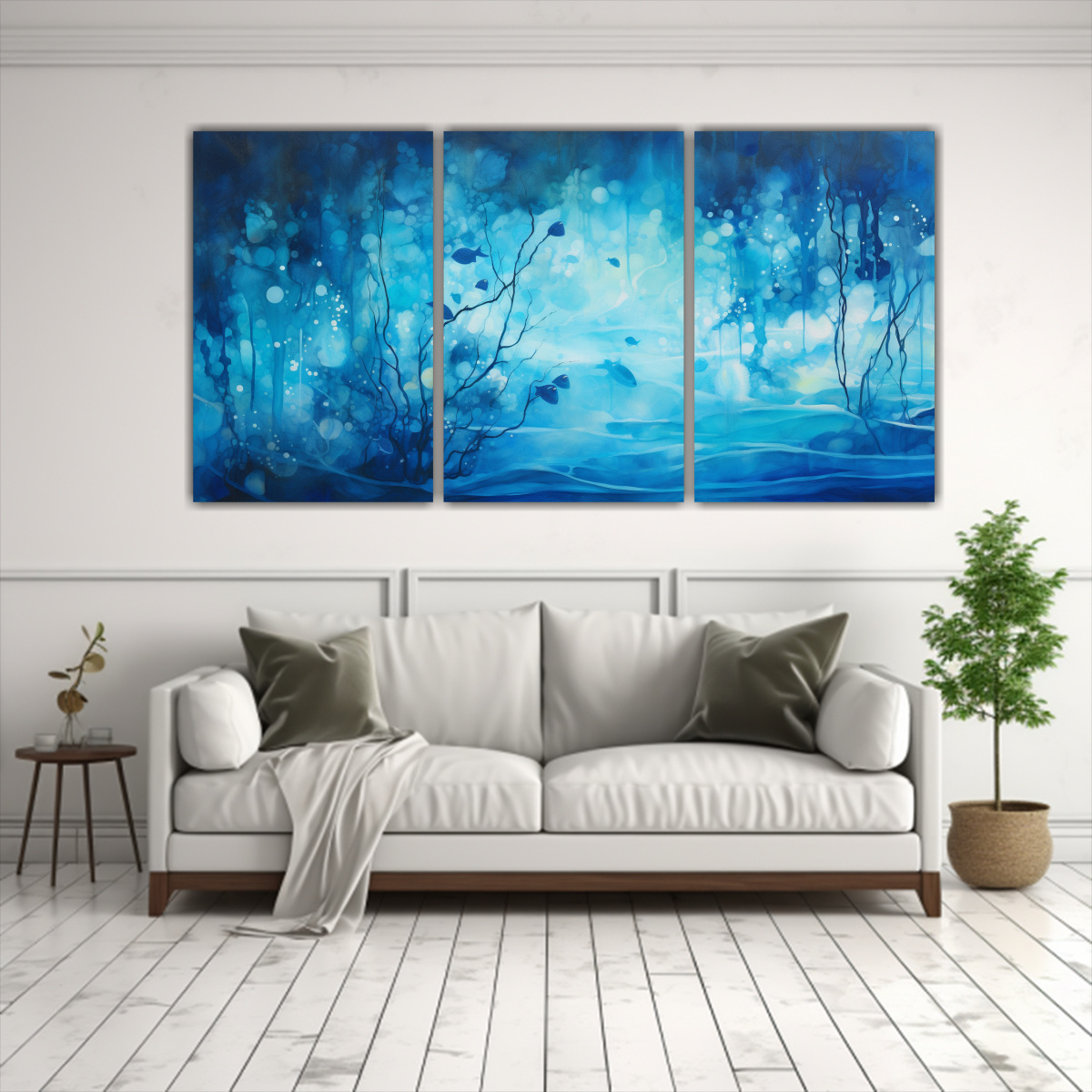 Pinturas Decorativas De Cuadroes Submarinas En Tres Lienzos De Tela Con Impacto Visual Abstracto