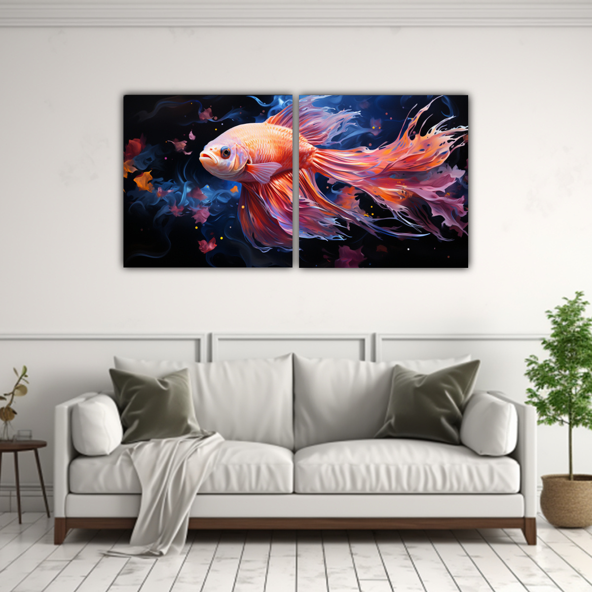 Dos Canvas con vibrantes colores como Coral, Azul Marino grisaceo, Negro, Gris, Beige, Lila y Turquesa Renueva tu decoración con esta obra de arte única Atrévete a darle un toque neo pop art a tu hogar