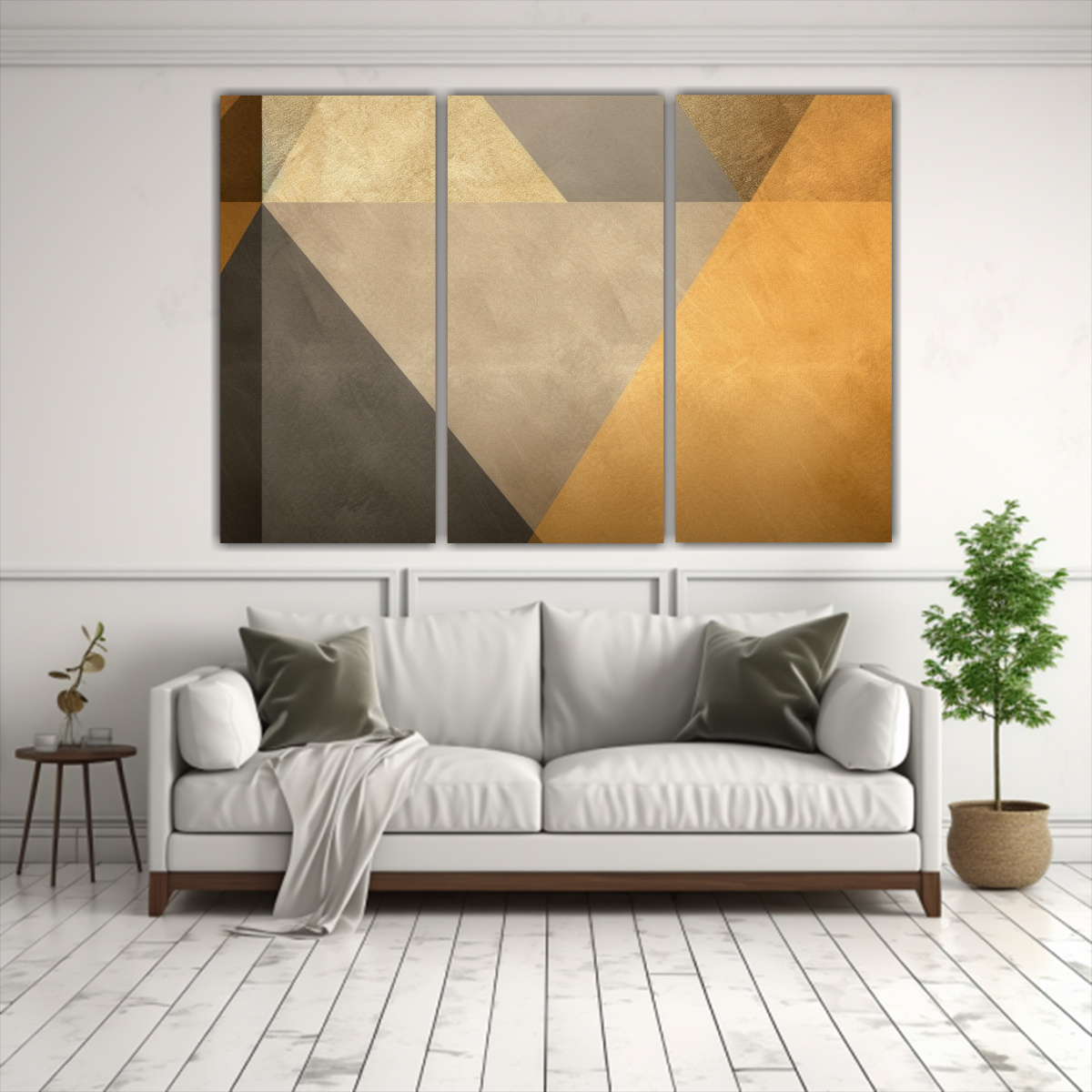 Pinturas Decorativas De Diseño De Arte Callejero En Un Fondo Geométrico Dorado Y Beige