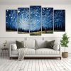 Pinturas Decorativas De Diseño Equilibrio De Hombre Volando Una Cometa En Blanco Y Azul En 5 Lienzos.