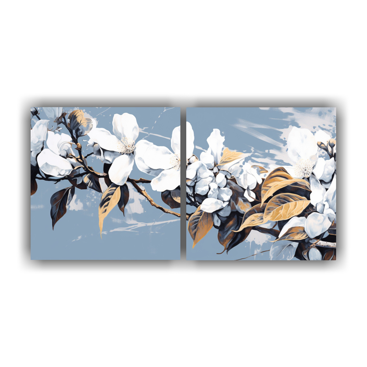 Este cuadro Dos Composiciones Expresion Mágico A Fig Tree en colores blancos quedará espectacular en tu sala de estar Colócalo en una pared de color blanco para resaltar la belleza de los colores azul marino grisáceo, beige, plateado y gris Combínalo con muebles modernos en tonos neutros para crear un ambiente elegante y sofisticado ¡Sorprende a tus invitados con esta pieza única de arte!