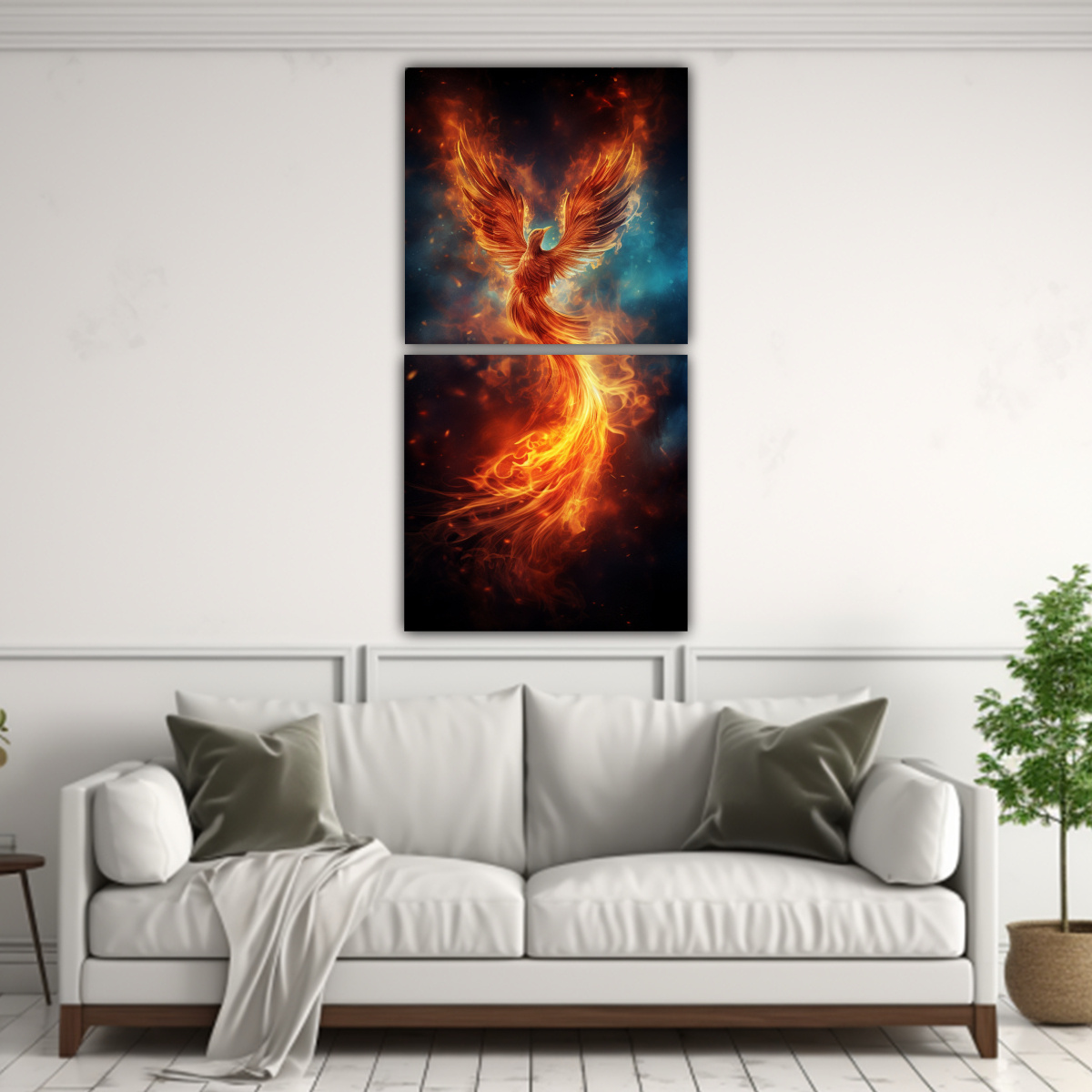 Pinturas Decorativas De Dos Cuadros Creativa: El Baile Ardiente Del Fénix Que Renace De Las Cenizas
