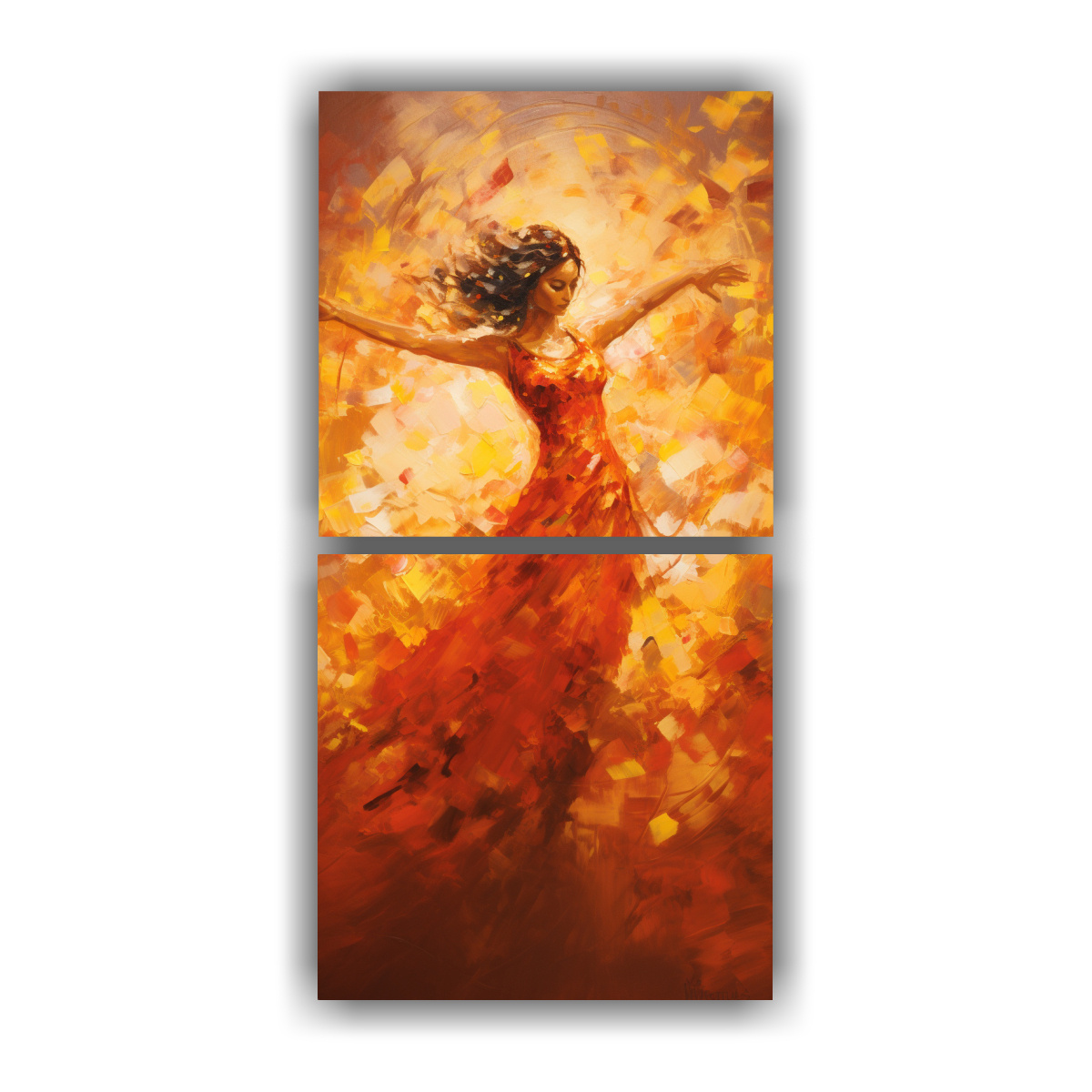 Pinturas Decorativas De Dos Cuadros Tonos Elegancia, La Vibrante Electricidad De Un Número De Baile De Bollywood.