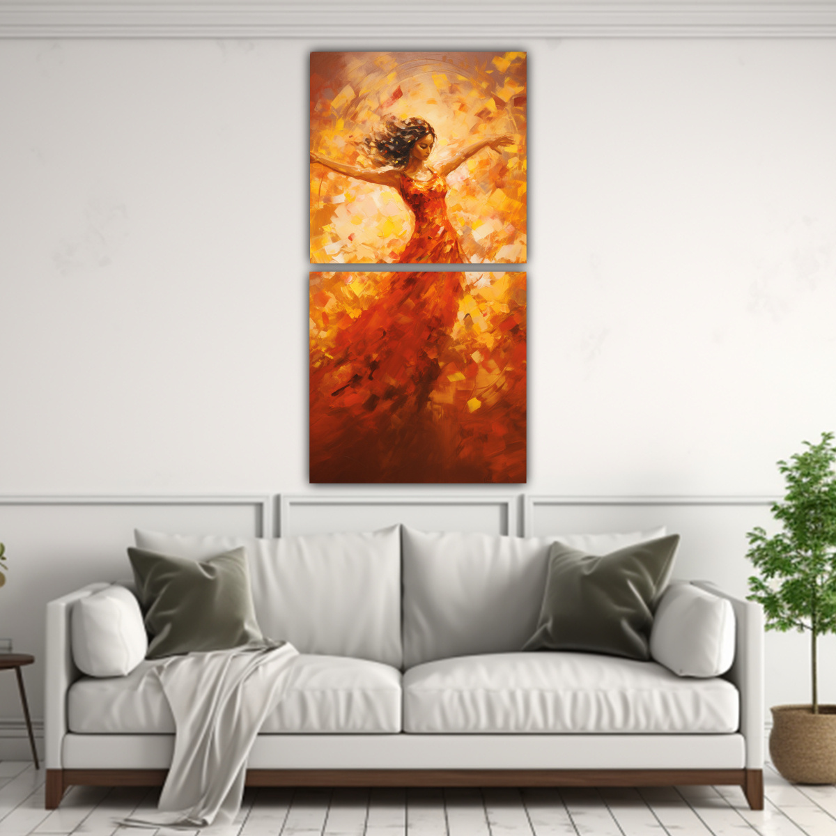 Este cuadro de Dos Cuadros Tonos Elegancia sería perfecto para decorar tu sala de estar o tu estudio Combínalo con muebles en tonos neutros como blanco o gris, y agrega algunos cojines en tonos dorados o coral para resaltar los colores vibrantes del cuadro ¡Crearás un ambiente lleno de energía y elegancia!