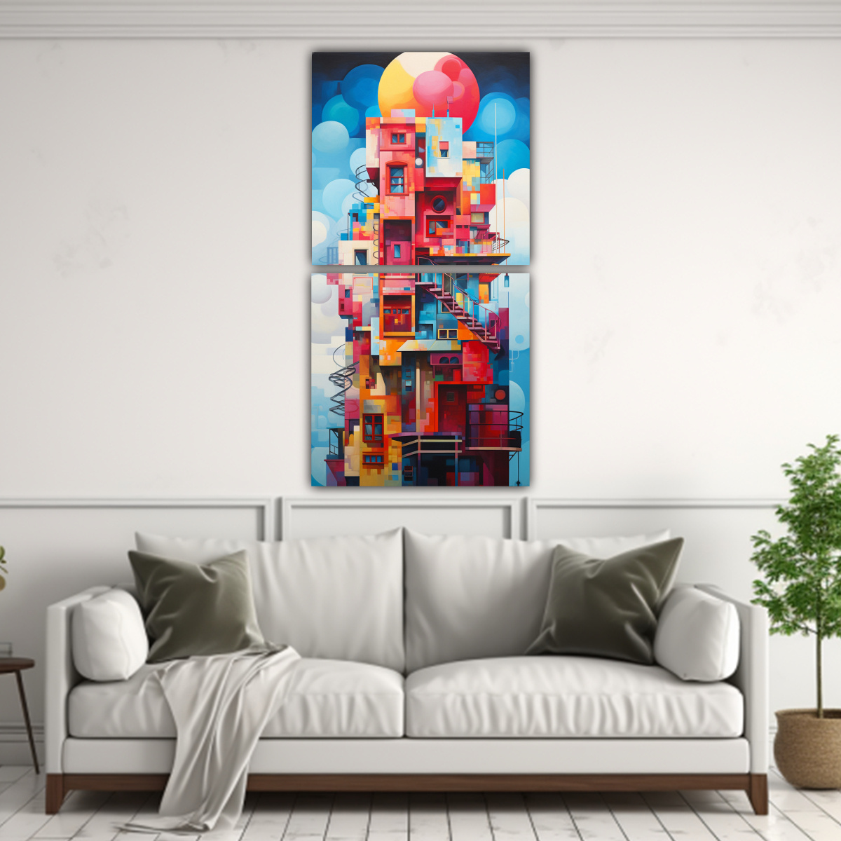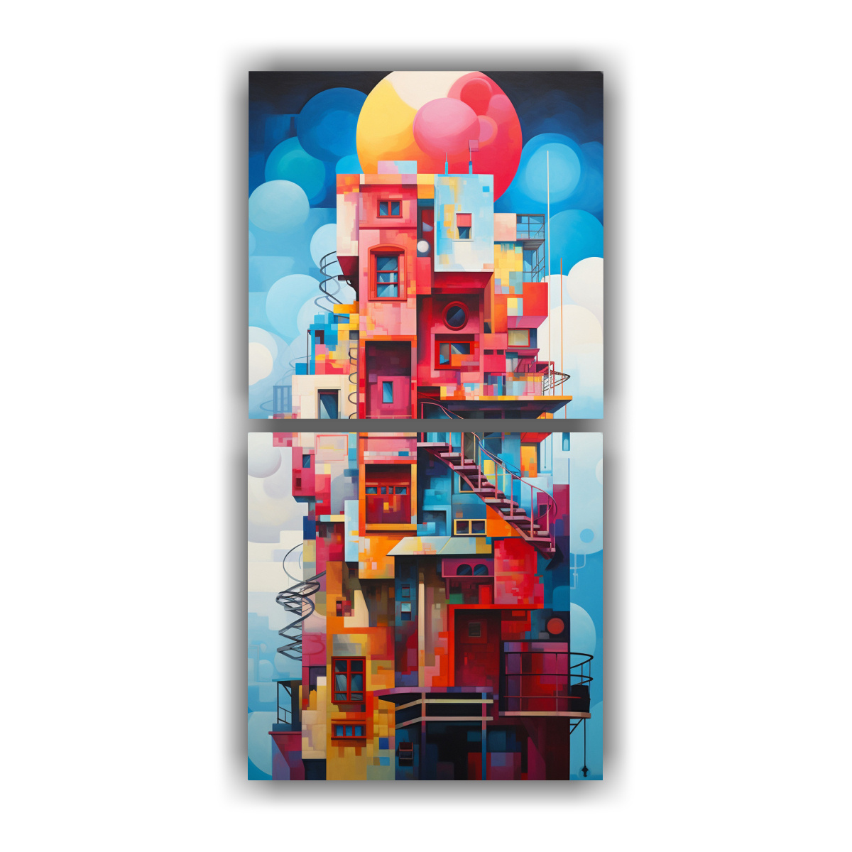 Pinturas Decorativas De Dos Lienzos De Tela Con Vibrante Fusión Abstracta De Arquitectura Y Arte