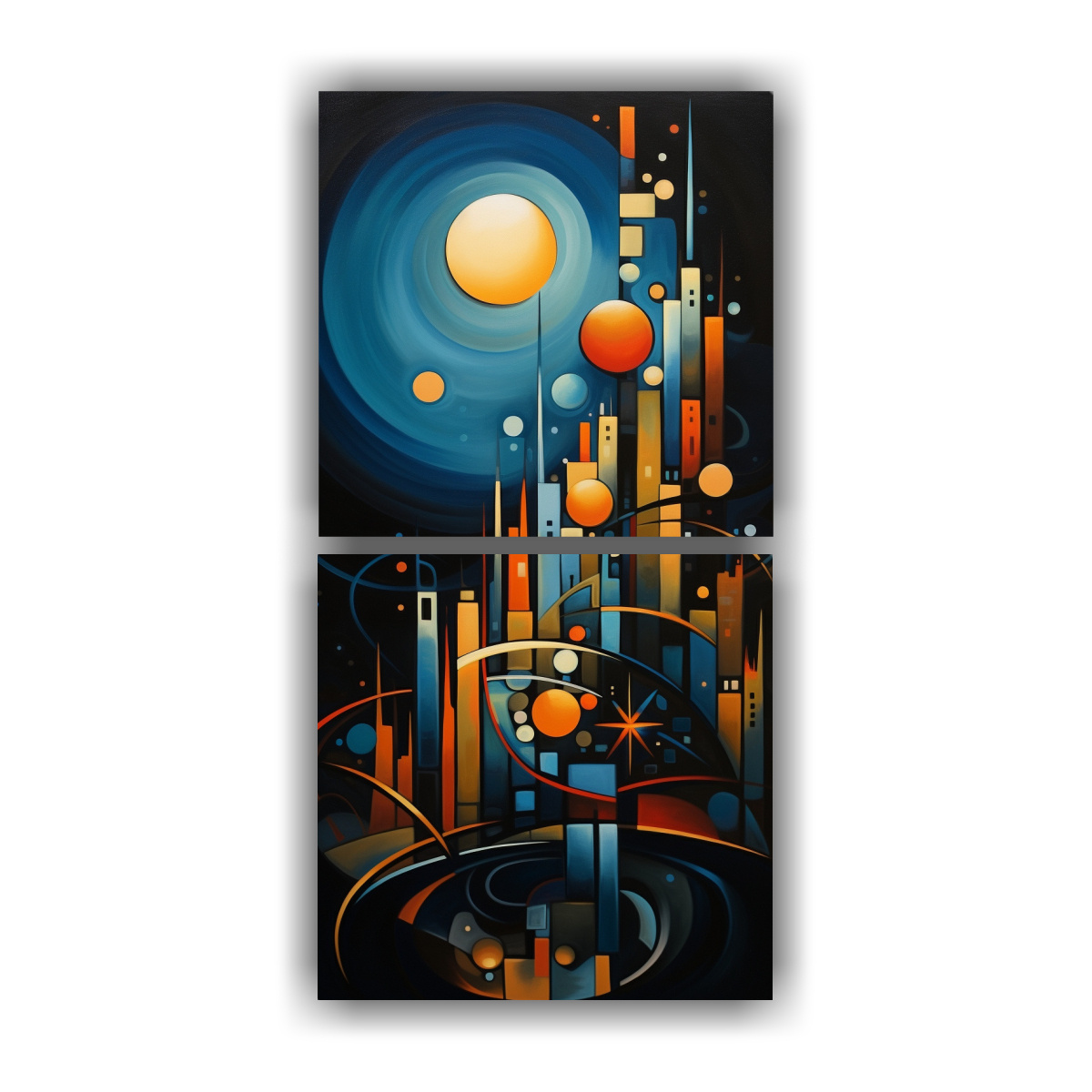 Pinturas Decorativas De Dos Telas En Bastidor Cuadro Impacto Visual Abstracto Armonía De Noche Y Día