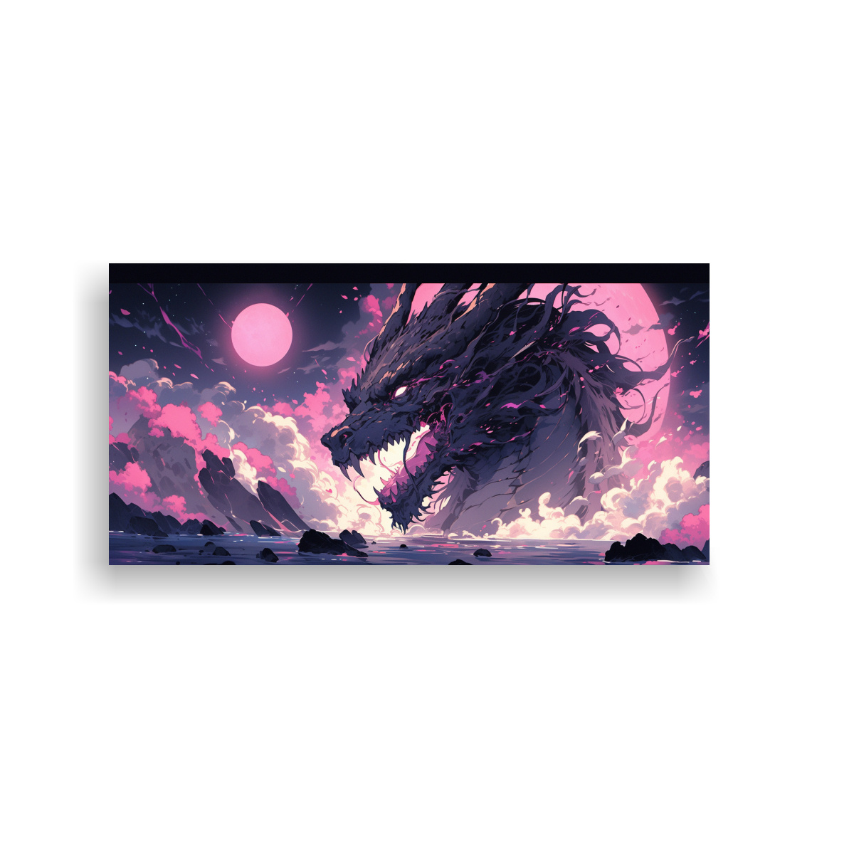 Pinturas Decorativas De Dragón En Acuarelas Y Tonos Rosados Con Atmósfera Neonoir