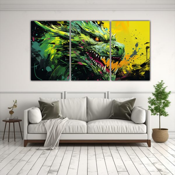 Este cuadro de dragón en amarillo y verde con estilo neonoir es ideal para colocarlo en la sala de estar, creando un punto focal impactante Combínalo con muebles en tonos neutros para resaltar su belleza y añadir un toque de sofisticación a tu decoración