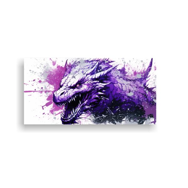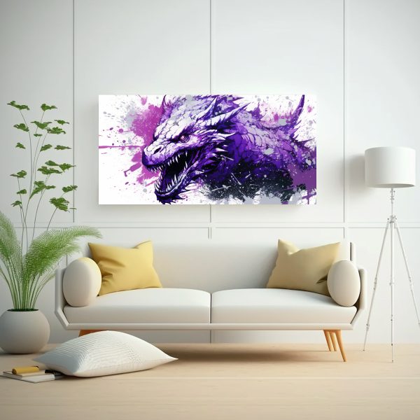 Este cuadro decorativo de dragón en tonos morado y blanco, estilo neonoir, sería ideal para colocar en la sala de estar sobre un sofá de color neutro, creando un punto focal que aporta modernidad y elegancia a tu espacio Combínalo con cojines en tonos morados y blancos para lograr un ambiente armonioso