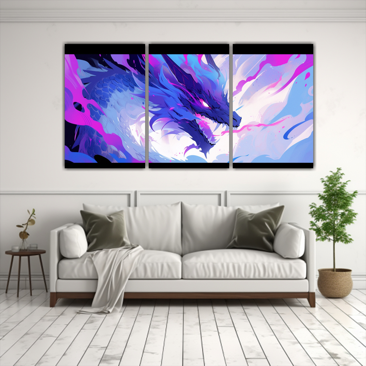 Pinturas Decorativas De Dragón En Tonos Púrpura Y Azul, Ambiente Neonoir