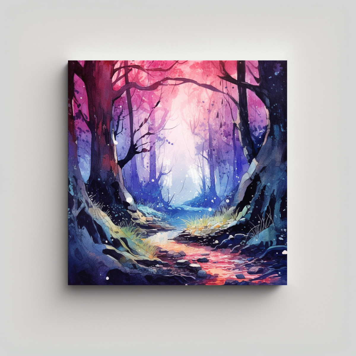 Pinturas Decorativas De Estilo Acuarela Vibrante Para Sala De Fantasía En Bosque Espaciado.