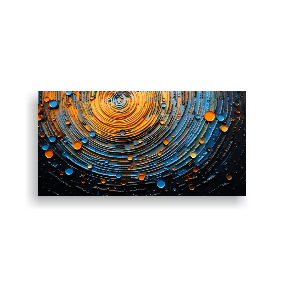 La sinfonía abstracta de gotas de lluvia en un tejado de hojalata es una pintura decorativa que captura la belleza y el encanto de la lluvia en un ambiente urbano Con tonos de coral, turquesa, negro, menta, dorado, plateado, carmesí y azul marino grisáceo, este cuadro aportará un toque de sofisticación y elegancia a cualquier espacio