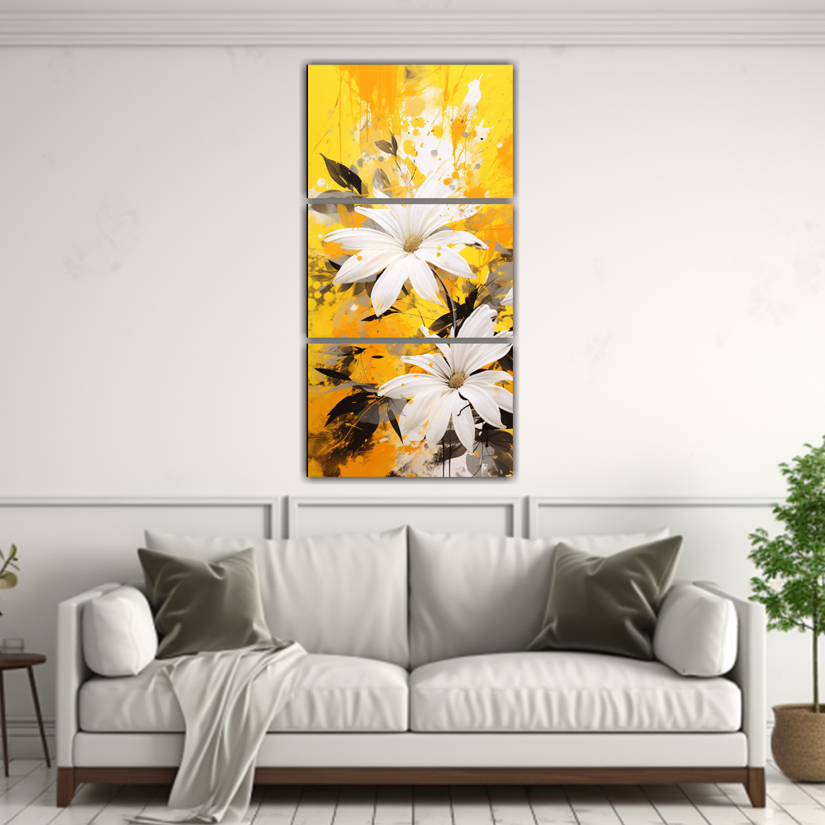 Renueva tu espacio con este set de 3 cuadros decorativos en tonos amarillo y blanco La mejor calidad y precios accesibles en DecoCuadros Envíos rápidos y gratuitos en Santiago, y envíos express a regiones