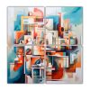 Este cuadro de expresividad cuadrada en tonos azul marino grisaceo, plateado, gris, dorado, carmesí, coral, beige y turquesa sería perfecto para decorar una sala de estar minimalista Colócalo sobre un sofá de color neutro y complementa con cojines en tonos claros y una alfombra gris El contraste de colores dará un toque moderno y elegante a tu espacio