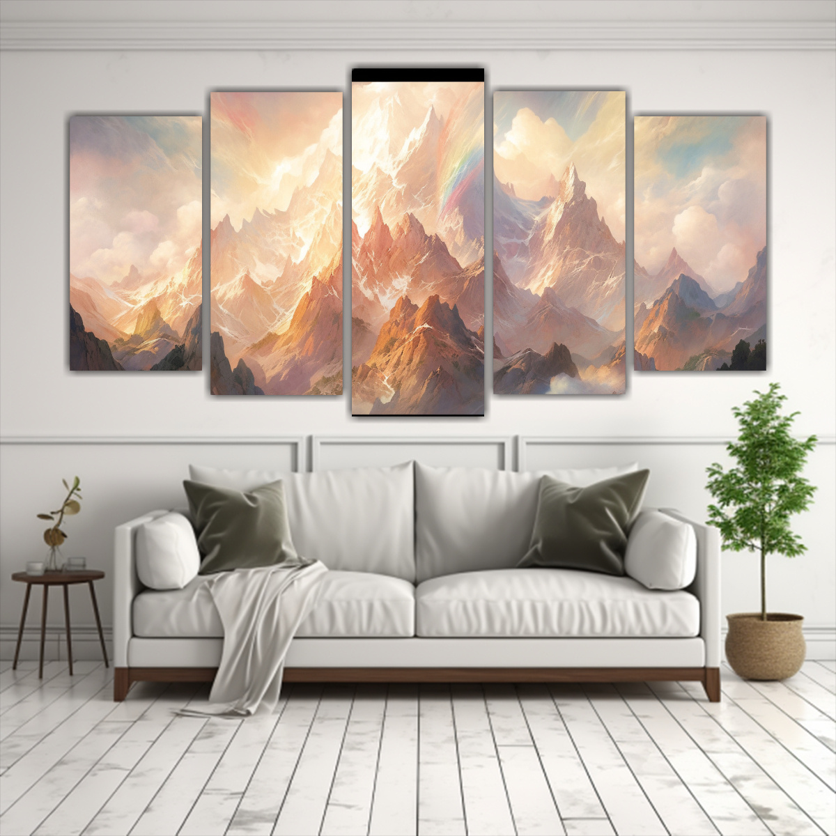 Renueva tu espacio con esta colección única que combina la majestuosidad de las cumbres con la belleza de los arcoíris y gol Aporta un toque de color y elegancia a tu hogar u oficina con estos cuadros decorativos de alta calidad ¡Haz tu pedido ahora y llena tus paredes de arte!