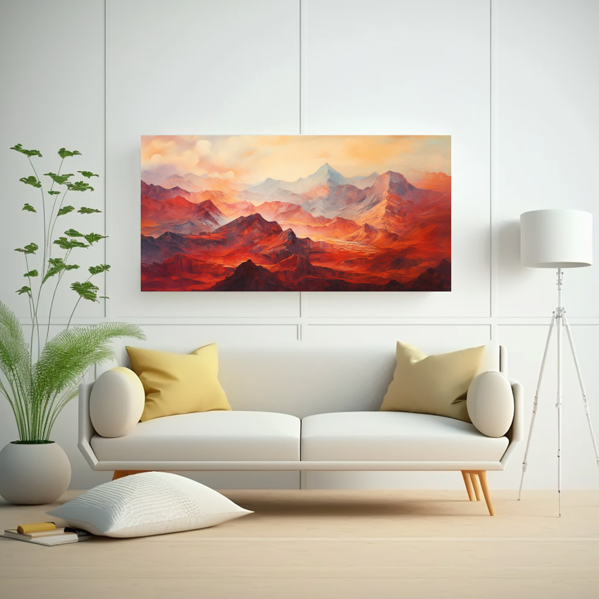 Pinturas Decorativas De Famosas Cumbres Y Cordilleras En Rojo Vibrante