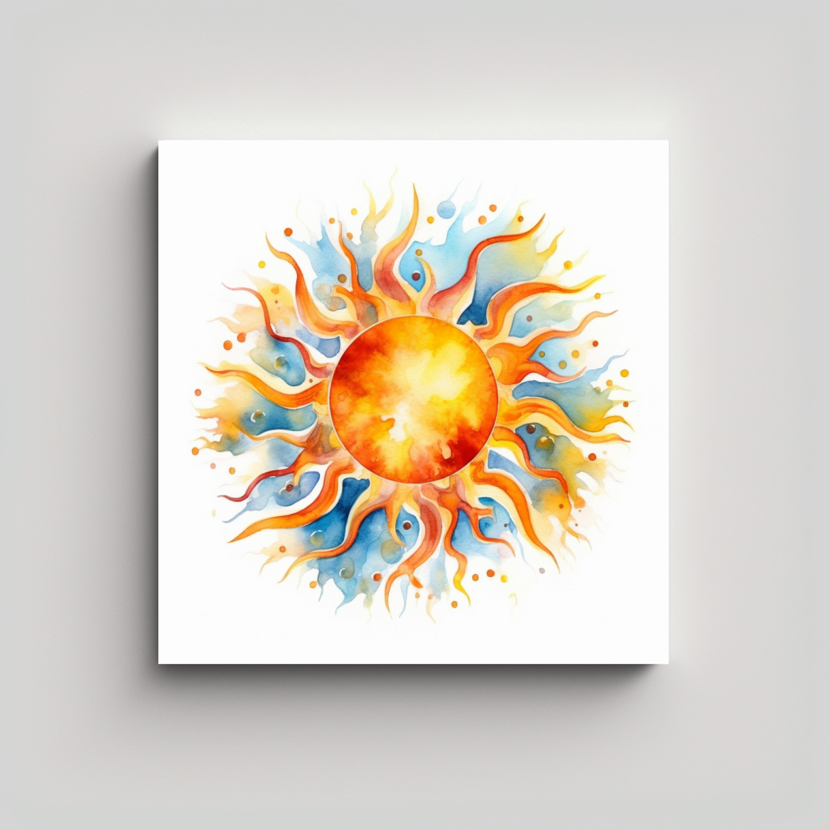 Pinturas Decorativas De Fantasía De Arte Finas Lineas: Sistema De Sol Acuarela Brillante Sobre Fondo Blanco.