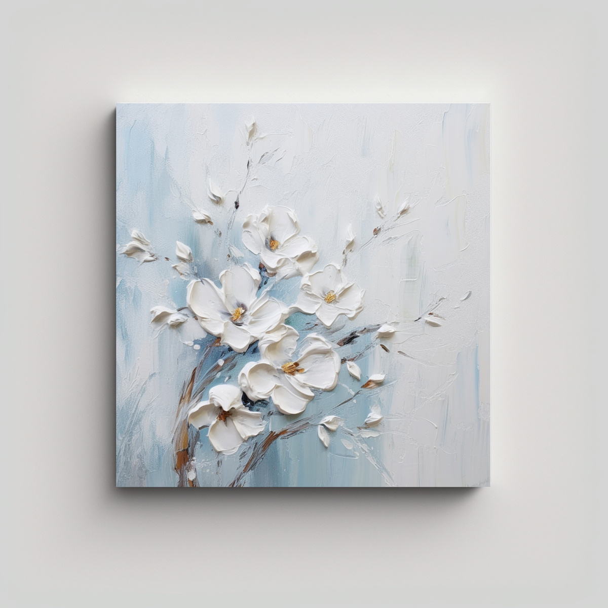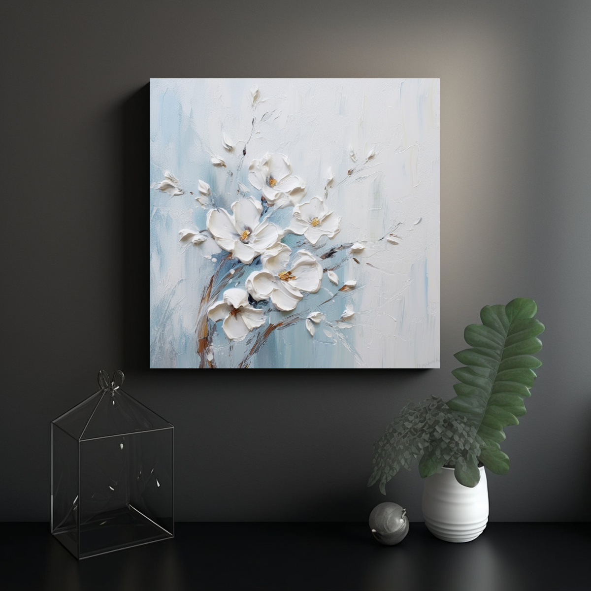 Agrega un toque de sofisticación a tus espacios con esta pintura decorativa que resalta la pureza de las flores blancas Envíos rápidos y gratuitos en Santiago, y express a regiones Renueva tu decoración con estilo y distinción