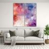 Agrega un toque de estilo a tu sala de estar colocando este cuadro de fondo acuarela grunge en tonos lila Combínalo con muebles en tonos neutros como beige y gris para crear una atmósfera elegante y relajante