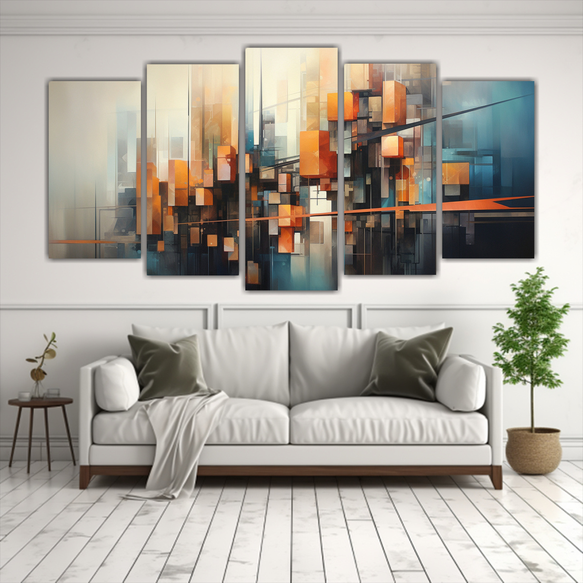 Pinturas Decorativas De Fusión Abstracta De Emociones Y Arquitectura Donde El Concepto Políptico Es Majestuoso
