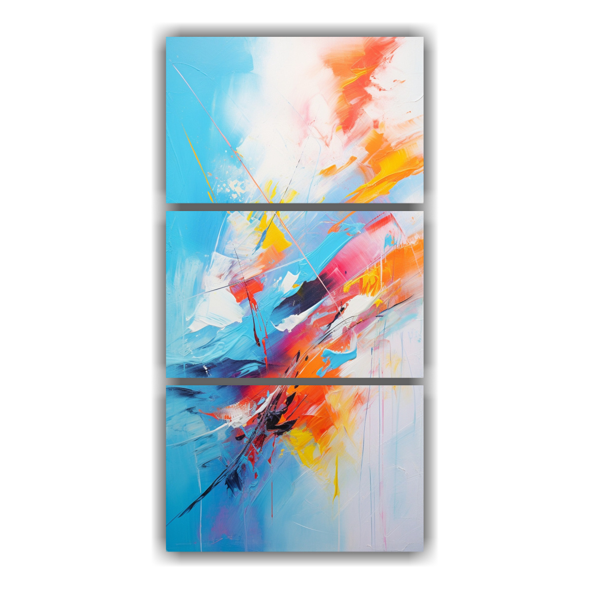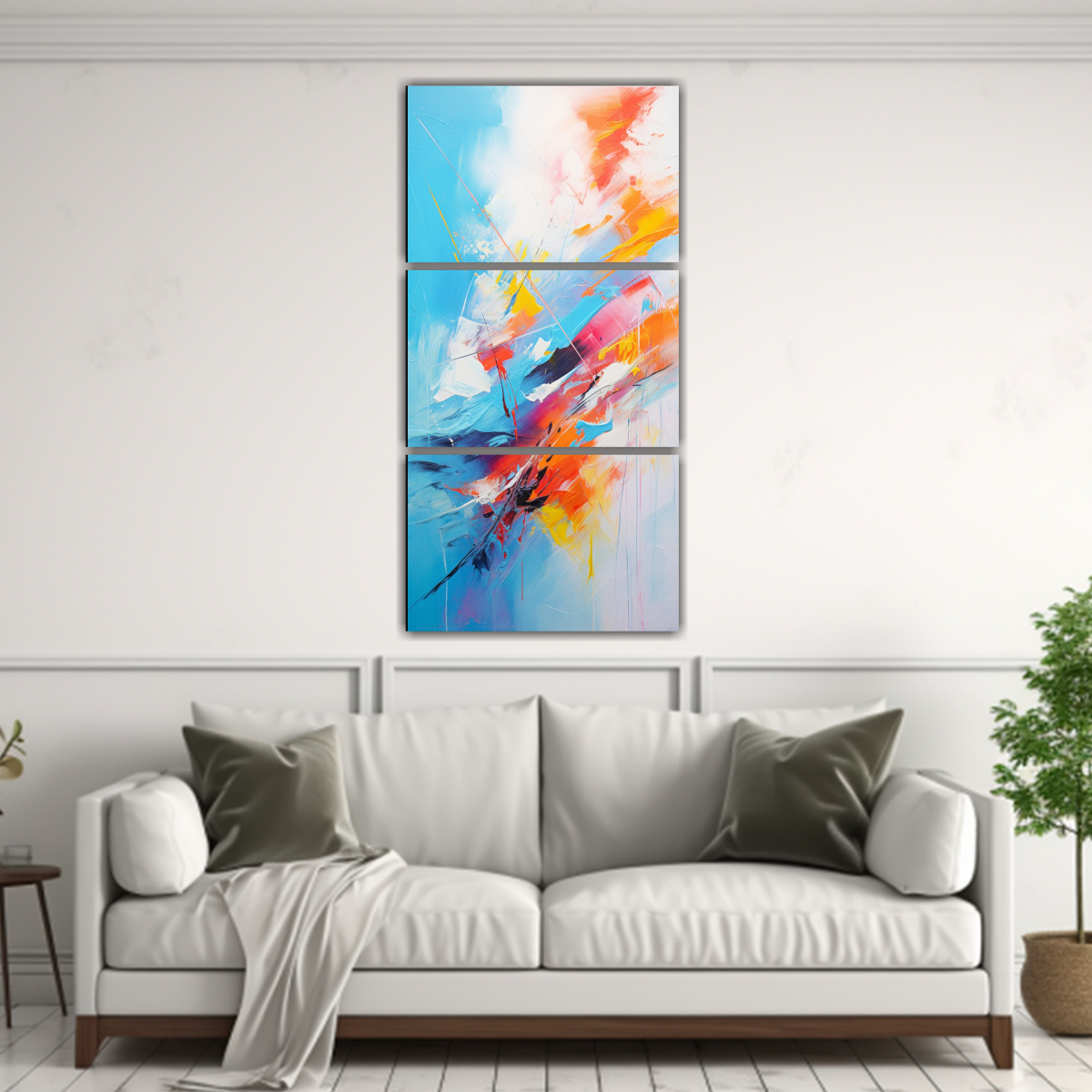 Este tríptico de forma creatividad abstracta y dinamismo combinaría a la perfección en una sala de estar moderna, sobre un sofá gris claro o una pared blanca, creando un contraste elegante y sofisticado Aportará frescura y originalidad a tu hogar