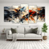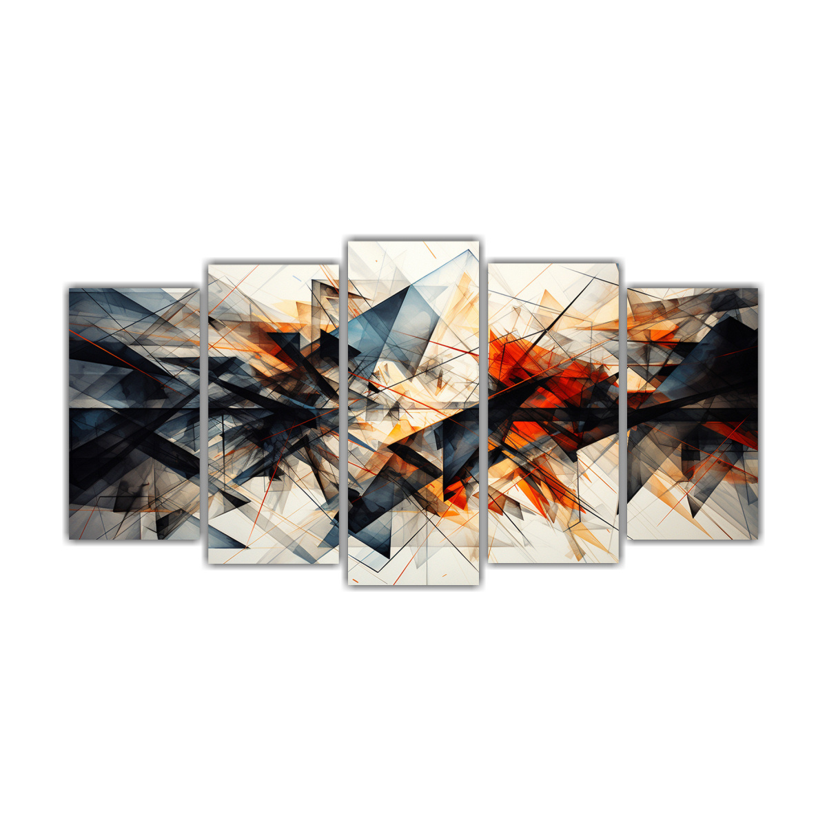 Pinturas Decorativas De Geometrías Abstractas Fundidas Y Colisionando En Lienzo Moderno Y Resistente, Set De 5.