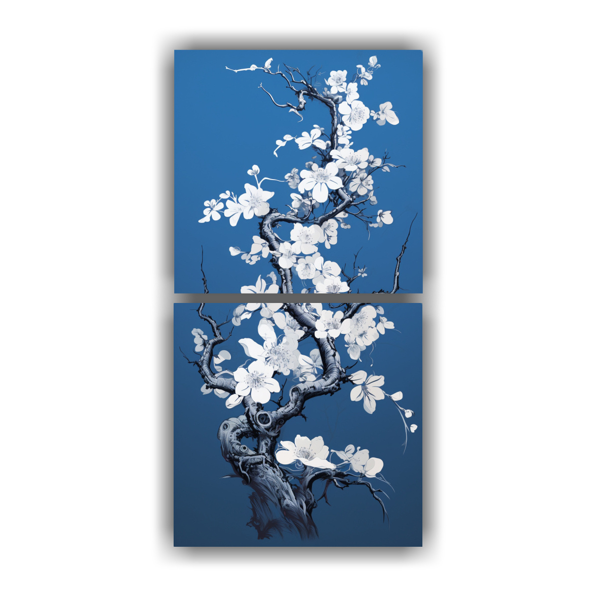 Pinturas Decorativas De Habitación De Inspiración En Un árbol De Durazno En Blanco Y Azul, Ambiente Neonoir