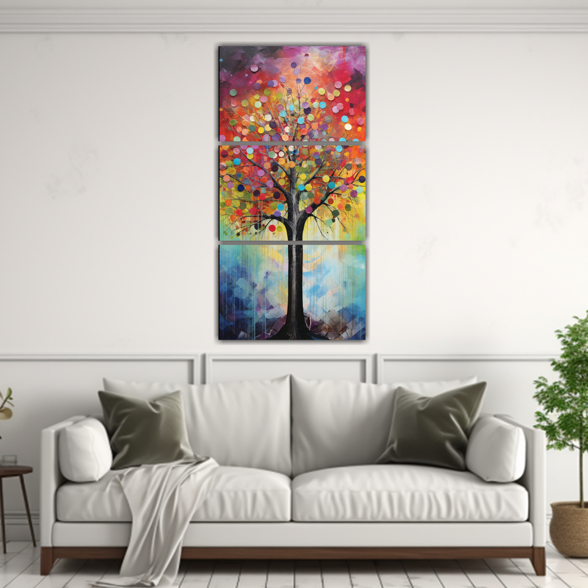 Este cuadro de árbol en colores arcoíris y plata es perfecto para agregar un toque de color y elegancia a cualquier habitación Puedes colocarlo en la sala de estar para crear un punto focal llamativo, o en el dormitorio para crear un ambiente relajante También puedes colocarlo en la oficina para inspirarte durante el trabajo ¡Las posibilidades son infinitas!