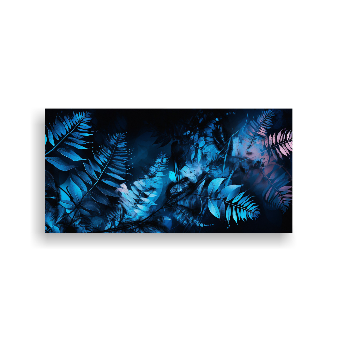 Agrega un toque neo-noir a tu ambiente con esta representación artística de hojas de helecho en colores vibrantes y misteriosos Envíos rápidos y gratuitos en Santiago, y express a regiones
