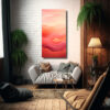 Este cuadro decorativo de atardecer de verano en tonos coral, carmesí y rosado claro sería perfecto para decorar tu sala de estar o tu dormitorio Combínalo con muebles blancos o neutros para resaltar los colores vibrantes del cuadro y crear una atmósfera relajante y cálida ¡Dale vida a tus espacios con esta obra de arte vanguardista!