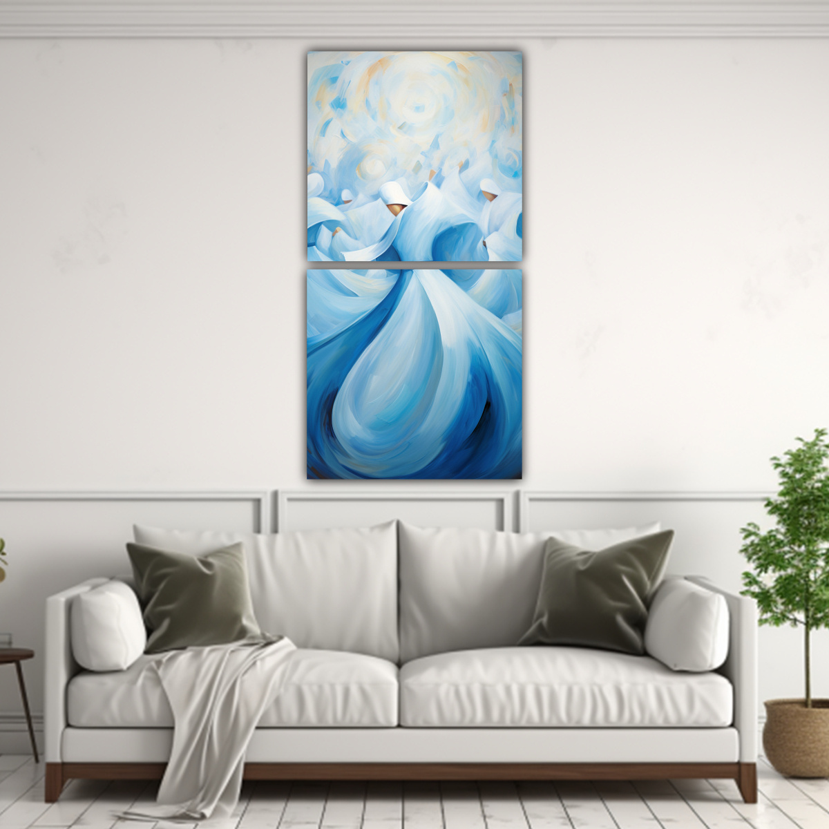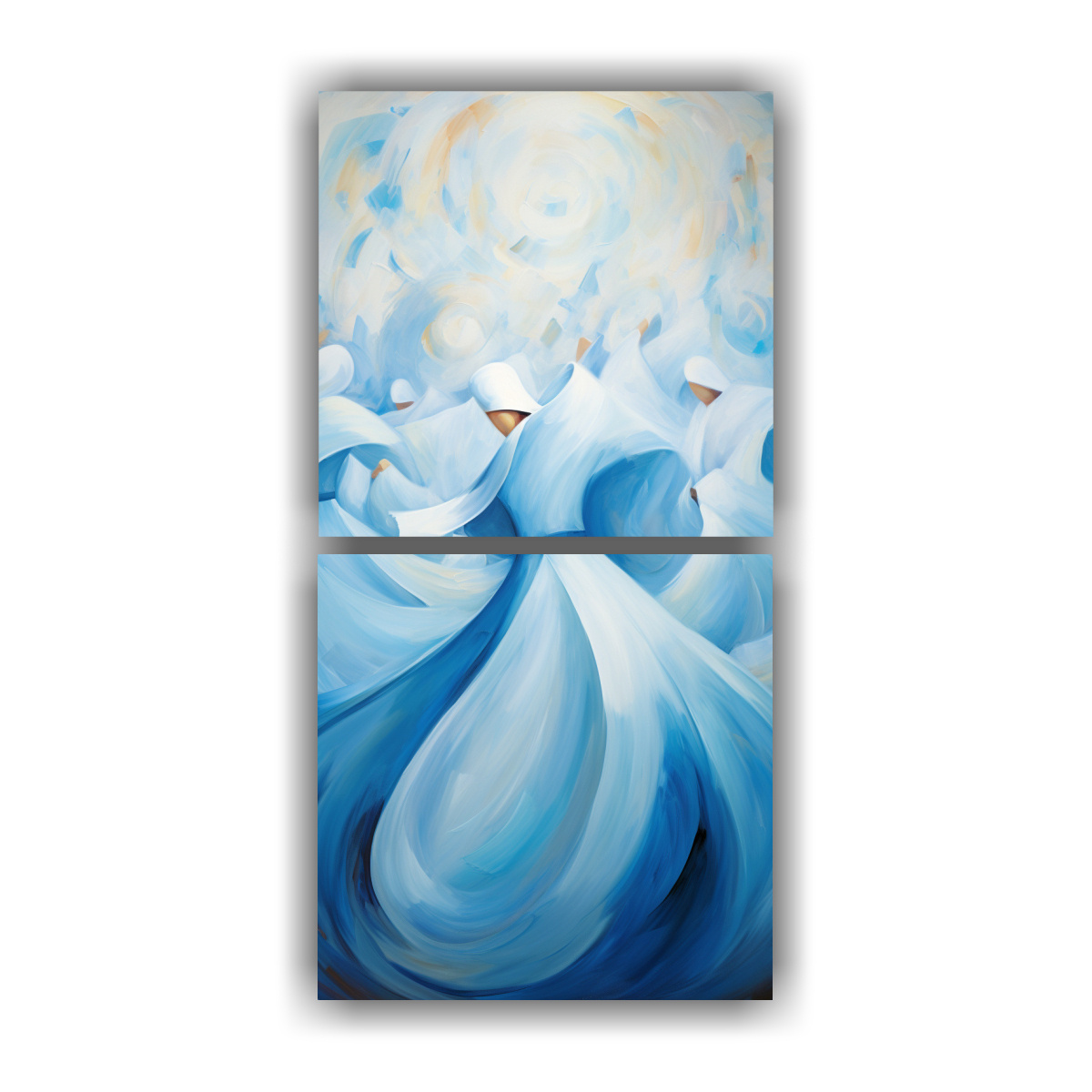 Coloca este cuadro en tu sala de estar para crear un ambiente único y sofisticado Combínalo con muebles de madera en tonos claros y complementa con cojines en colores neutros y detalles en plateado De esta manera, lograrás una decoración elegante y moderna que destacará la belleza de los derviches giratorios capturados en una danza de abstracción