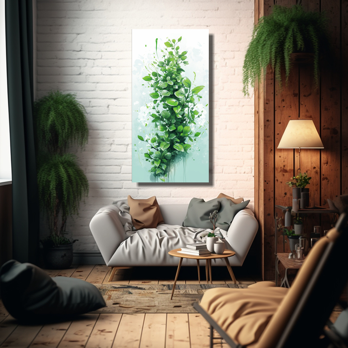 Pinturas Decorativas De Lienzo Abstracto Duradero Con Hierbas De Tomillo En Colores Verde Y Blanco, Con Atmósfera Neonoir