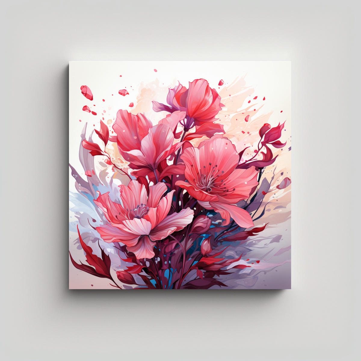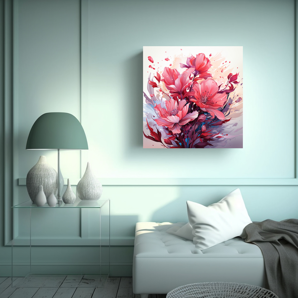 Este cuadro de pinturas decorativas de lienzo floral en tonos rojo y rosa se vería perfecto en una sala de estar o comedor de estilo moderno Combínalo con muebles en tonos neutros como gris o blanco, y agrega cojines en los colores presentes en la obra, como el lila, el coral o el turquesa Esto creará una atmósfera elegante y sofisticada en tu espacio ¡Atrévete a darle un toque neo-noir a tu hogar!