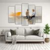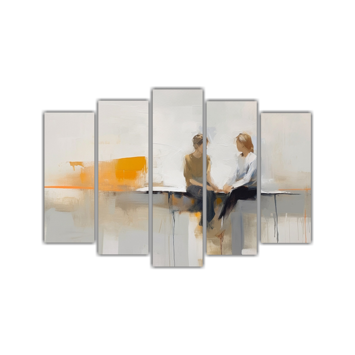 Pinturas Decorativas De Lienzo Para Dos Adolescentes Aprendiendo Juntos Con Luz Natural Y Gestos.