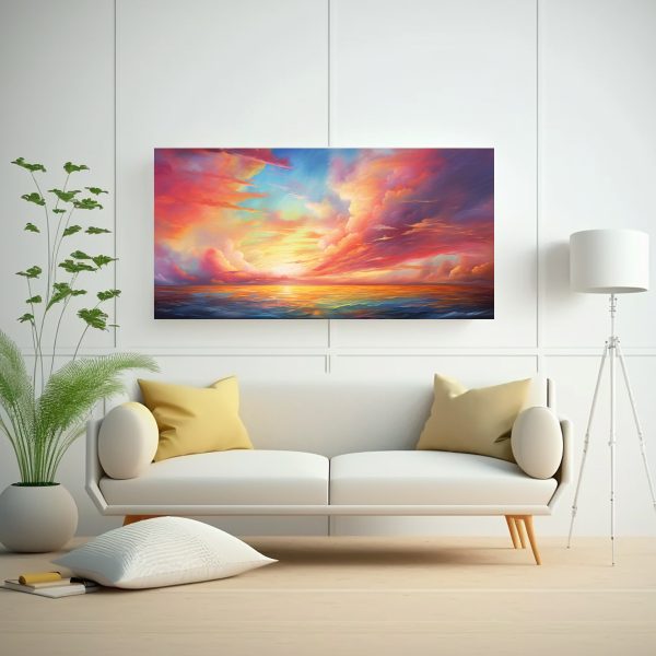 Pinturas Decorativas De Lienzos De Amaneceres Y Atardeceres Con Arcoíris Y Colores Rojos