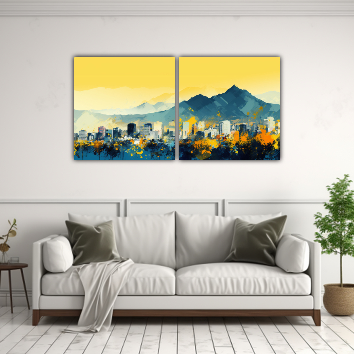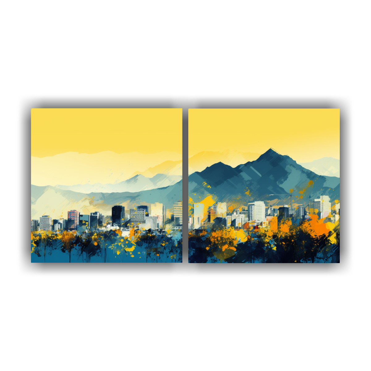 Pinturas Decorativas De Líneas Finas En Amarillo Y Azul En Santiago.
