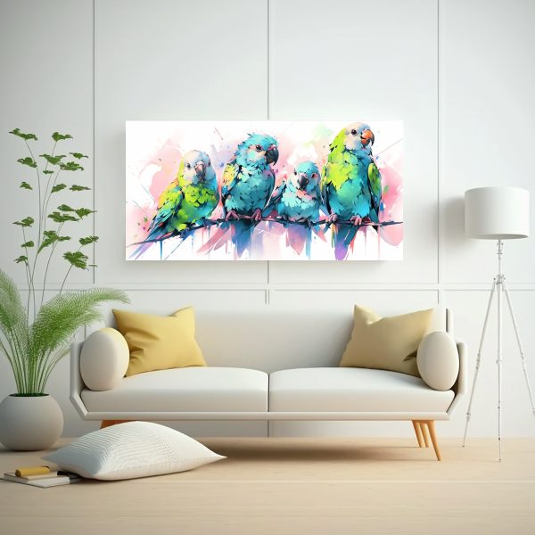 Pinturas Decorativas De Loros En Tonos Pastel Y Azules Para Arte Minimalista Pop Neo