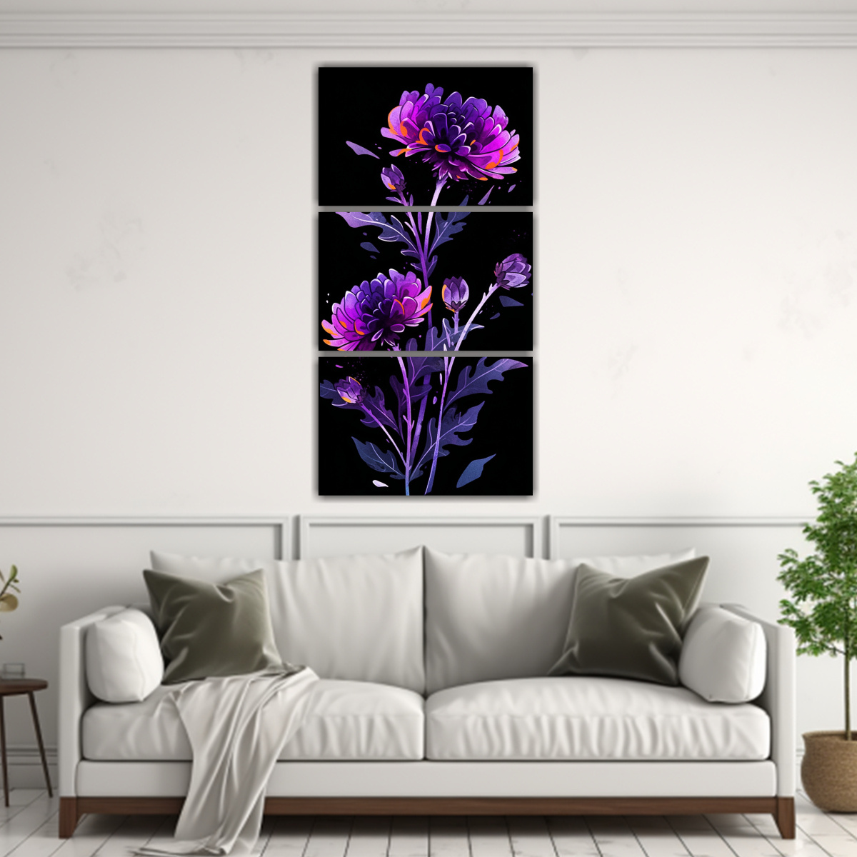 La composición equilibrada de Marigold Herbs en tonos morados y neonoir ofrece un toque de sofisticación y misterio a tu hogar Aprovecha nuestras entregas rápidas y gratuitas en Santiago, y envíos express a regiones para disfrutar de este cuadro en poco tiempo