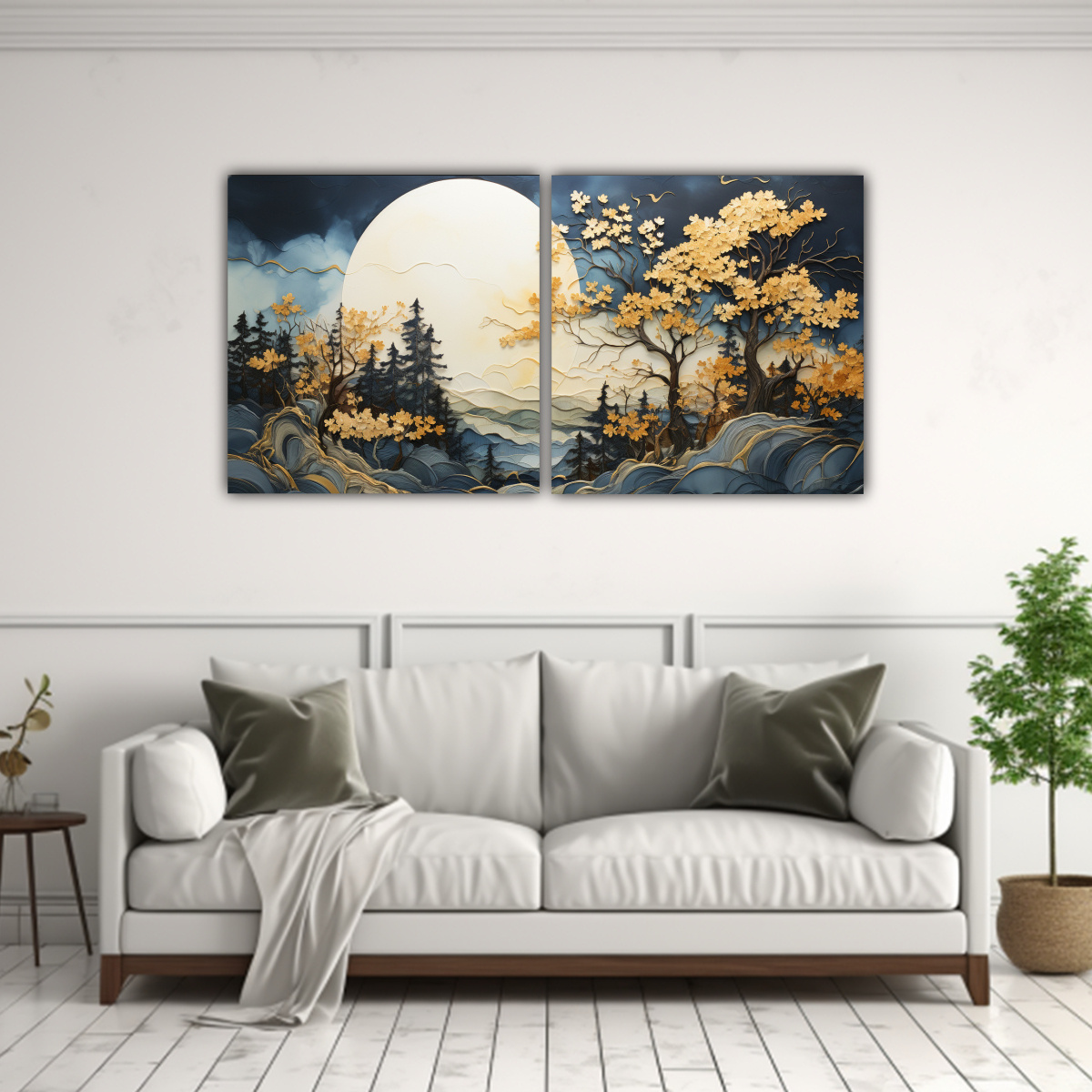 Este cuadro se vería perfecto en la sala de estar, sobre un sofá en tonos neutros Su diseño exclusivo de montañas en colores plateado, azul marino grisaceo, gris, coral, dorado y chocolate, le dará un toque de elegancia y tranquilidad al ambiente