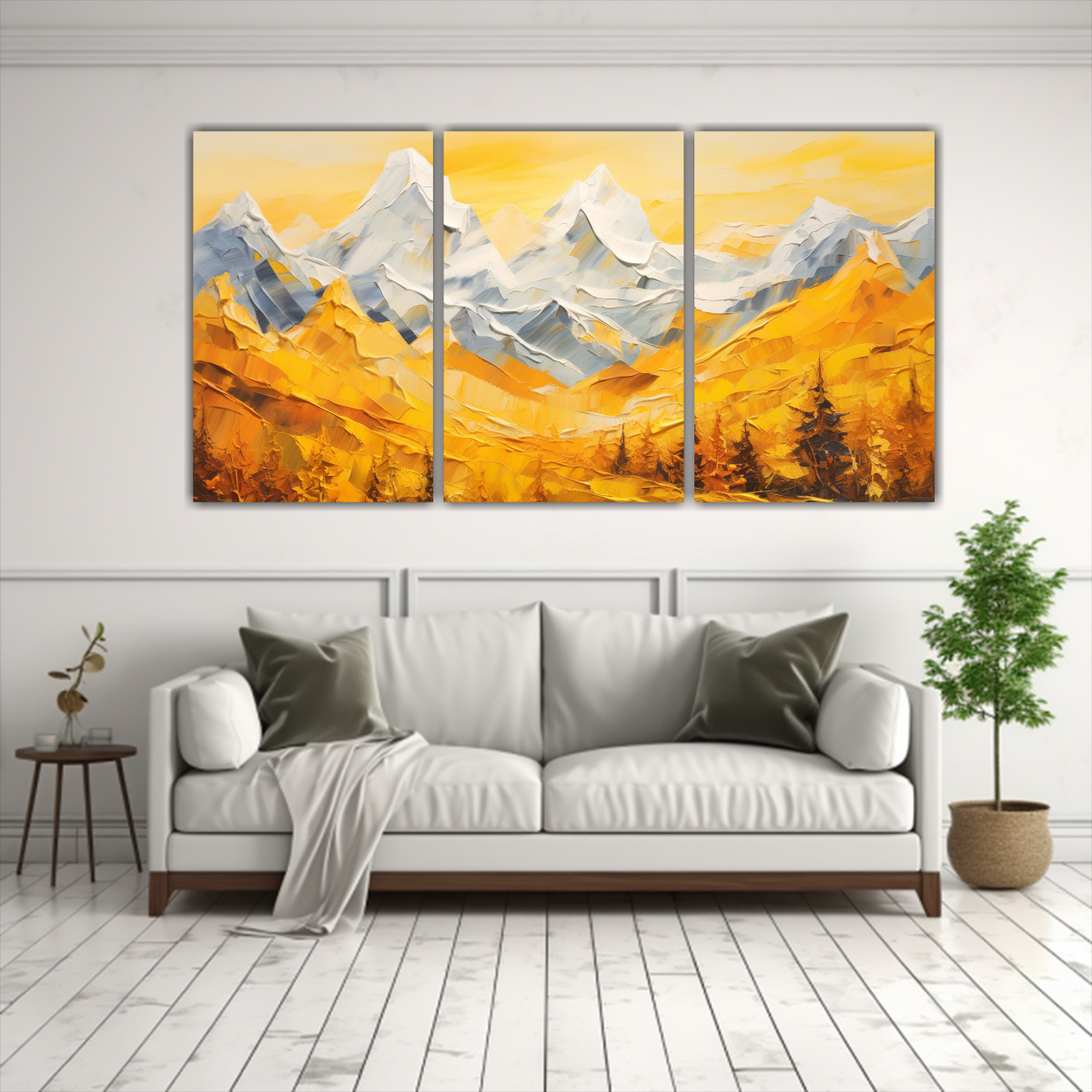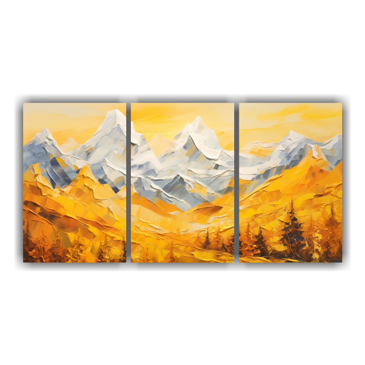 Coloca este set de cuadros en tu sala de estar para crear un ambiente cálido y acogedor Combínalos con muebles en tonos neutros para resaltar la vitalidad de las montañas amarillas ¡Transforma tu espacio con un toque de arte único!