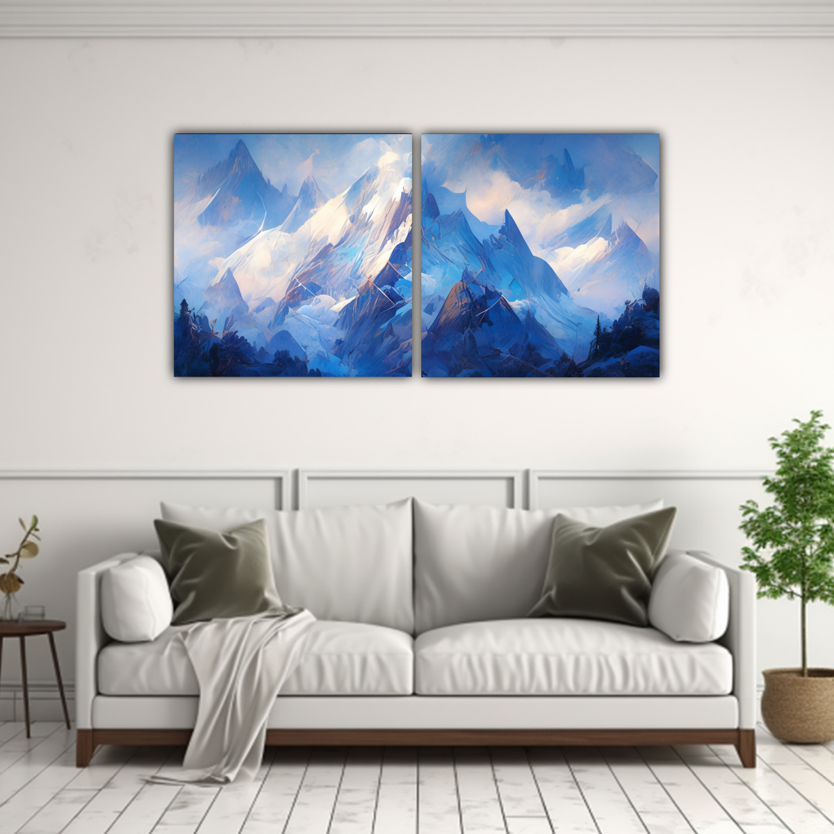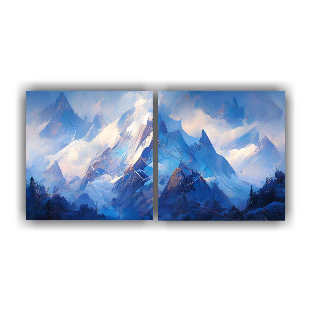 Pinturas Decorativas De Montañas Famosas En Tonos Azules.