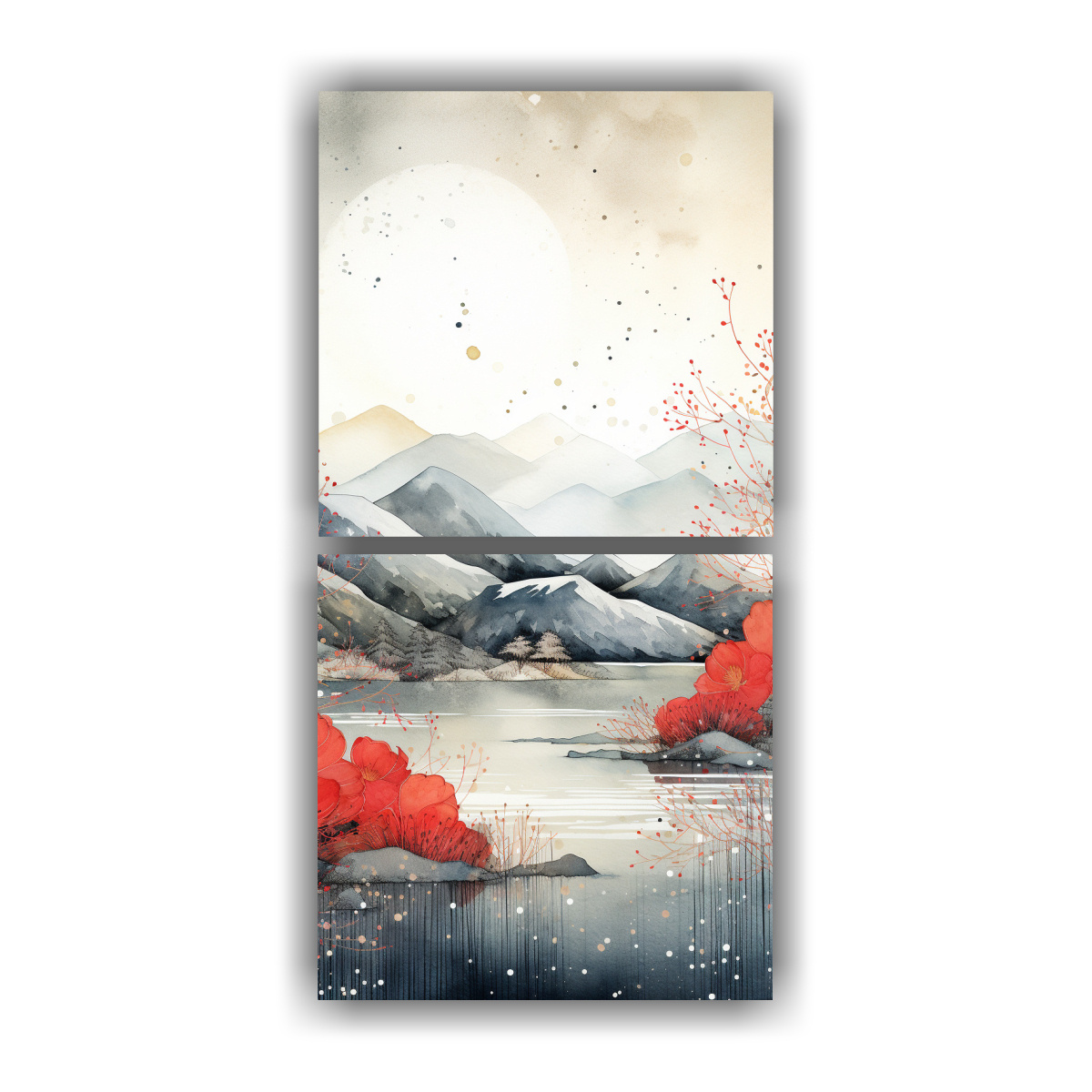 Decora tu hogar con cuadros decorativos de montañas reflejadas en un ambiente moderno Colores: azul marino grisaceo, beige, carmesí, gris, coral, plateado, menta Diseños exclusivos y alta calidad Precios económicos y entregas rápidas en Santiago Envíos express a regiones